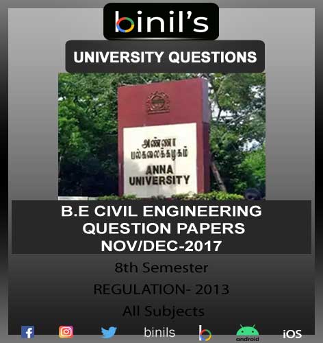 We all know that Anna University conducts Semester Exams for UG/PG Courses twice per year. However, preparing for an exam with Anna University Civil Engineering year Question Papers brings some value. Here comes the post to Anna University Civil previous question paper 8th semester Nov/Dec 2017 reg-2013. So, students don’t skip this post before preparing; because it is also a part to score good marks.