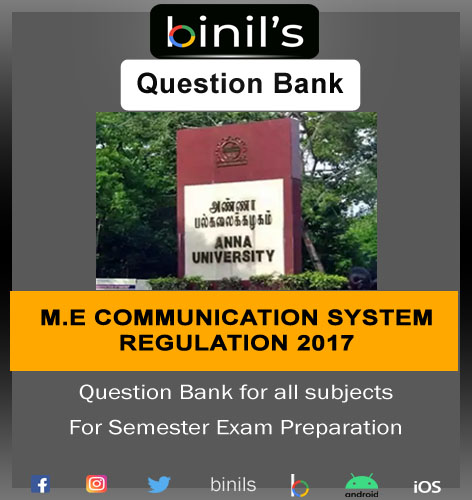 Anna University Chennai is dealing with the number of UG/PG courses with periodic changes in the Syllabus. Usually, the university changes the syllabus by every four years based on the developments in the engineering field. Similarly, here the post is for the question bank for Communication System for all semester. As per Anna University, Communication System subjects deals […]