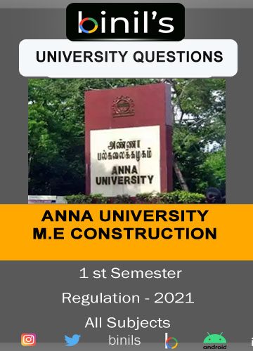 Anna University M.E Construction Engineering Previous Year Question Papers For 1st Sem Regulation 2021